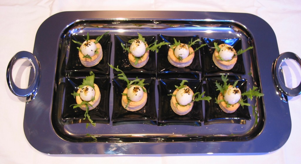 PUFF PASTRY VOL AU VENTS WITH QUAIL EGGS (mayonnaise, curly endive, celery seeds, caviar, nigella seeds)