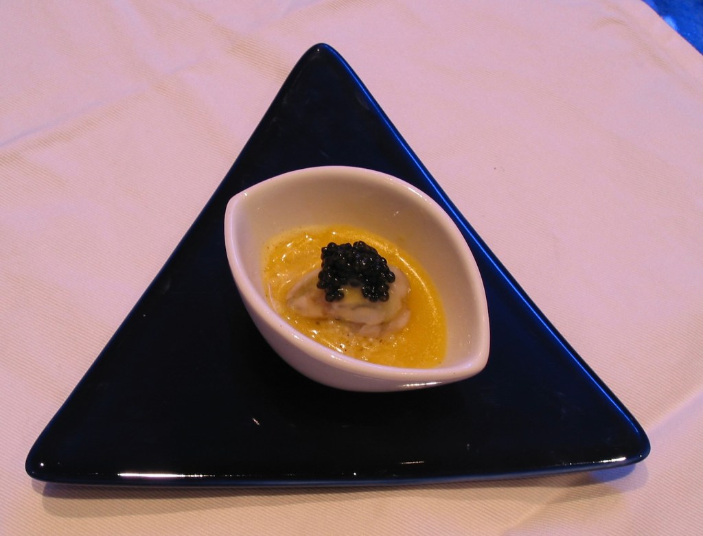“OYSTERS & PEARLS” (sabayon of pearl sago with malpeque oysters and astra caviar) – a Thomas Kellar recipe