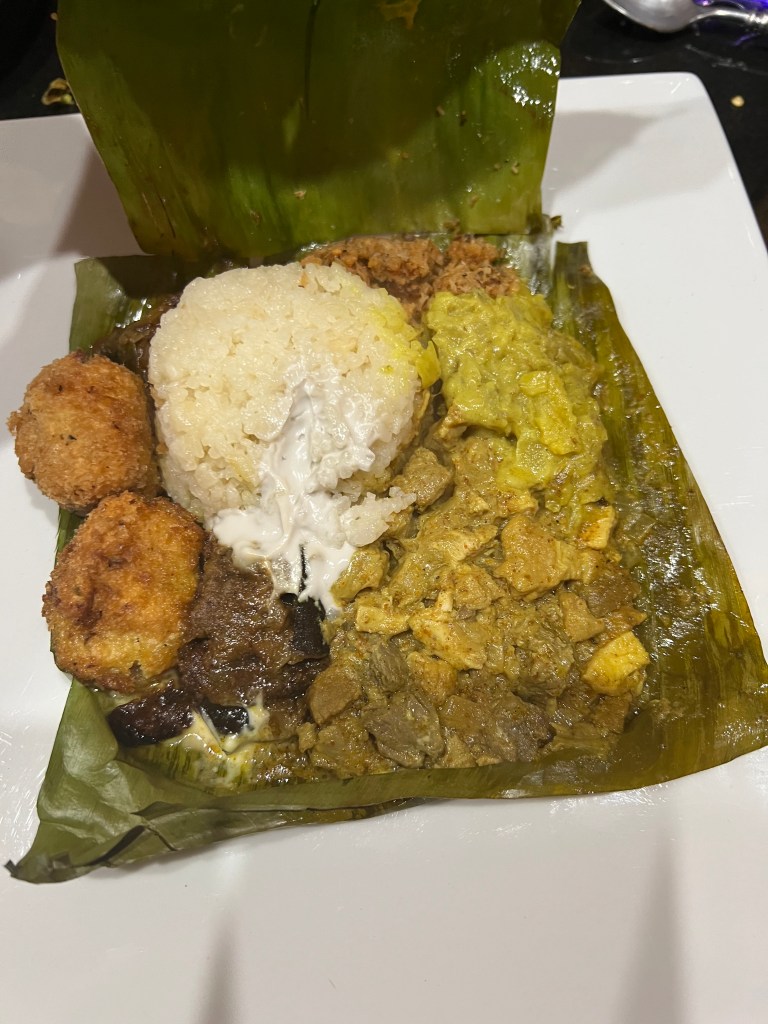 George’s Lamprais curry: Excellent. The only clues have was that the meat was won in a a raffle. “Lamb, blade steak, chicken thigh and pork belly – all cooked a little differently. The lamb and beef were boiled first and then used that stock to cook the rice … Three days to do all the steps and components.