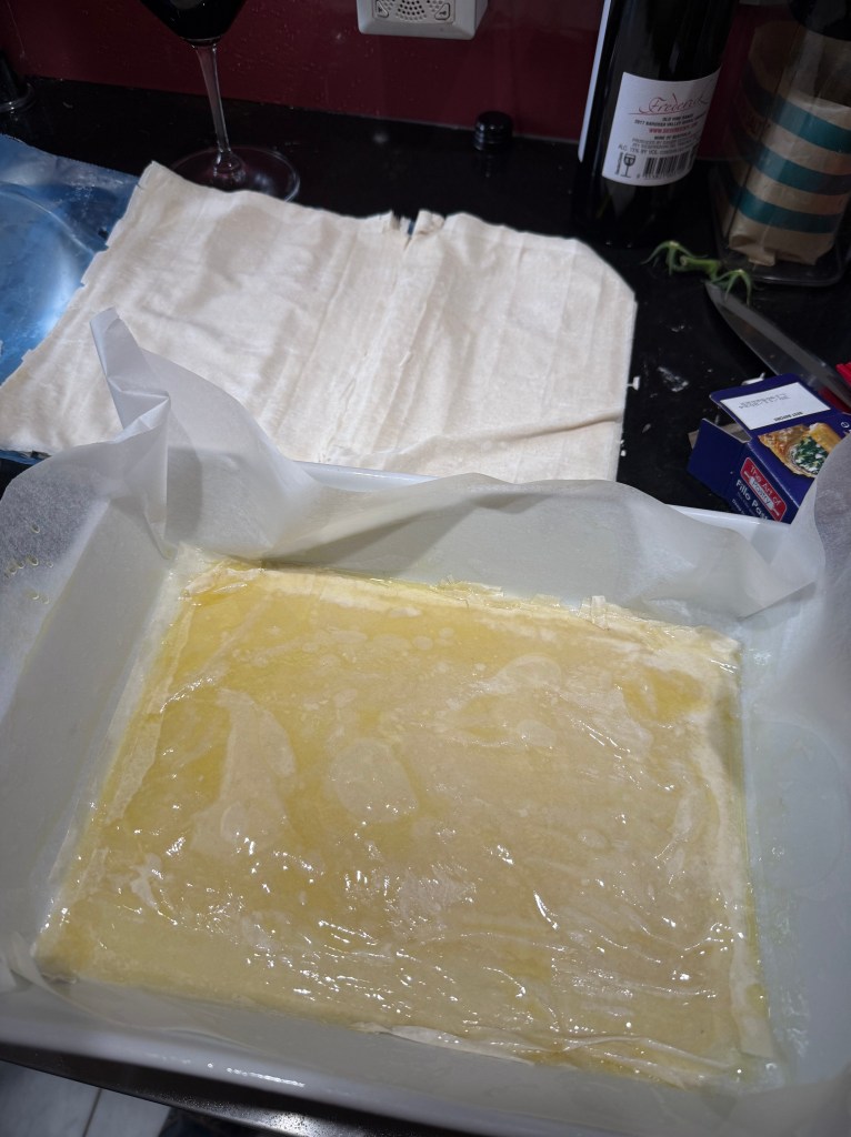 Then there is the laborious task of buttering (clarified butter) of the 18 filo pastry sheets.