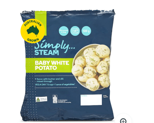 New Potatoes (I tried the ones in the microwavable bag. Just place the whole bag in the microwave, and a seal opens up to let off steam. 7 minutes was more than sufficient.)