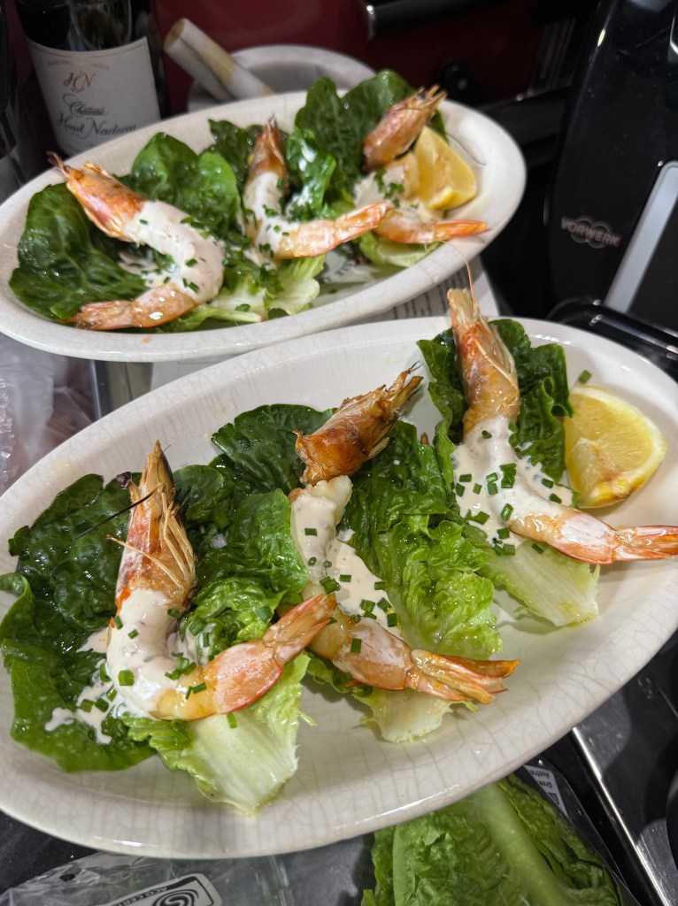 Prawns cooked on the BBQ, and then brushed with the prawn butter.