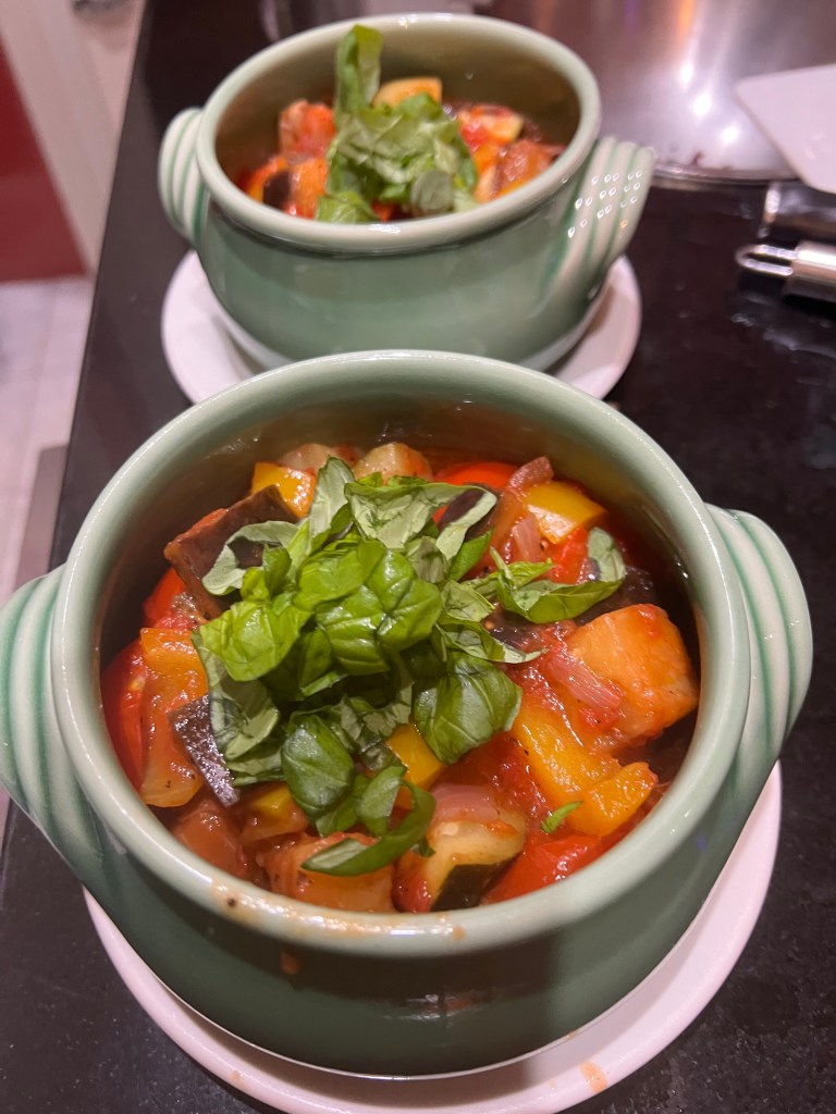 Like most Ratatouille, it was improved (IMHO) by the addition of chilli flakes, and much better the second day when the flavours develop more.
