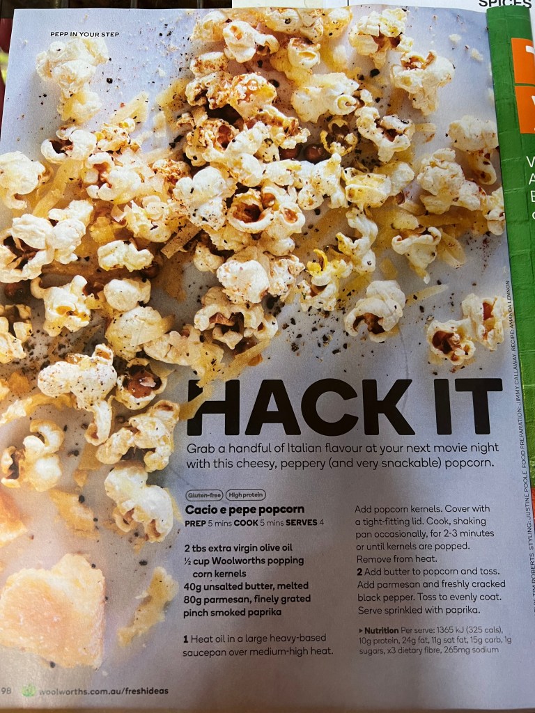 Popcorn, butter, parmesan, EVOO, smoked paprika