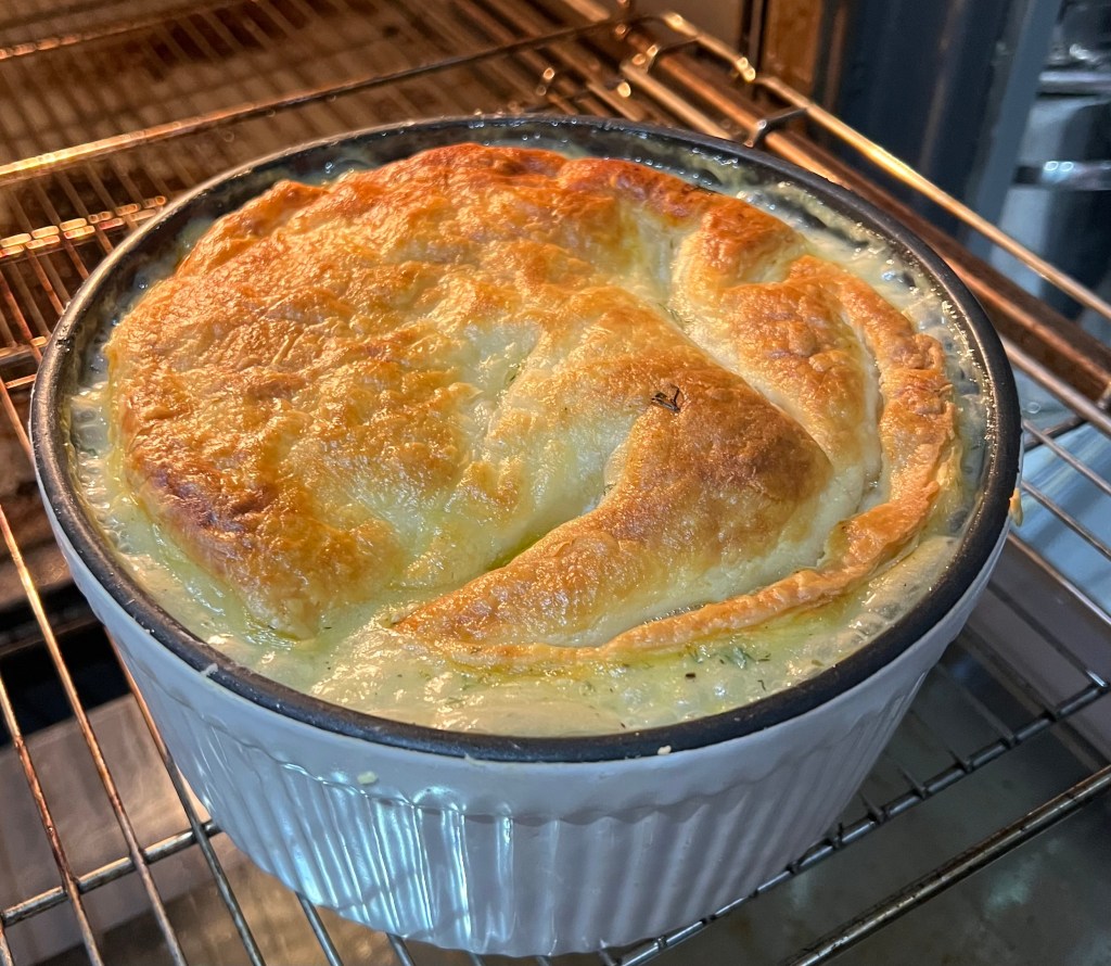 Butter, garlic, flour, fish stockSour creamLing, prawns, smoked trout,DillPuff pastry