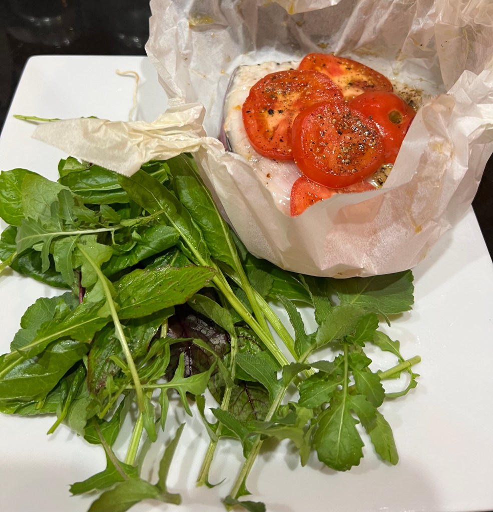 The sugar which was an interesting addition, which I nearly omitted, made the onions very sweet which matched perfectly with the swordfish and tomatoes.