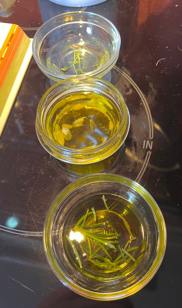 The trout was bagged in a combination of garlic infused EVOO, thyme infused in grape-seed oil, and rosemary infused in garlic oil. The infusions were done in an Anova vacuum chamber.