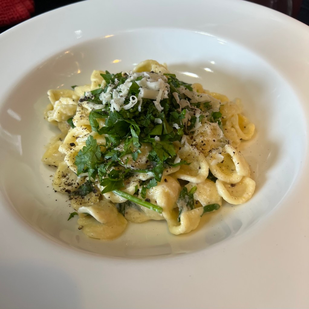 Baby spinach, lemon, pure cream, provolone and parsley.