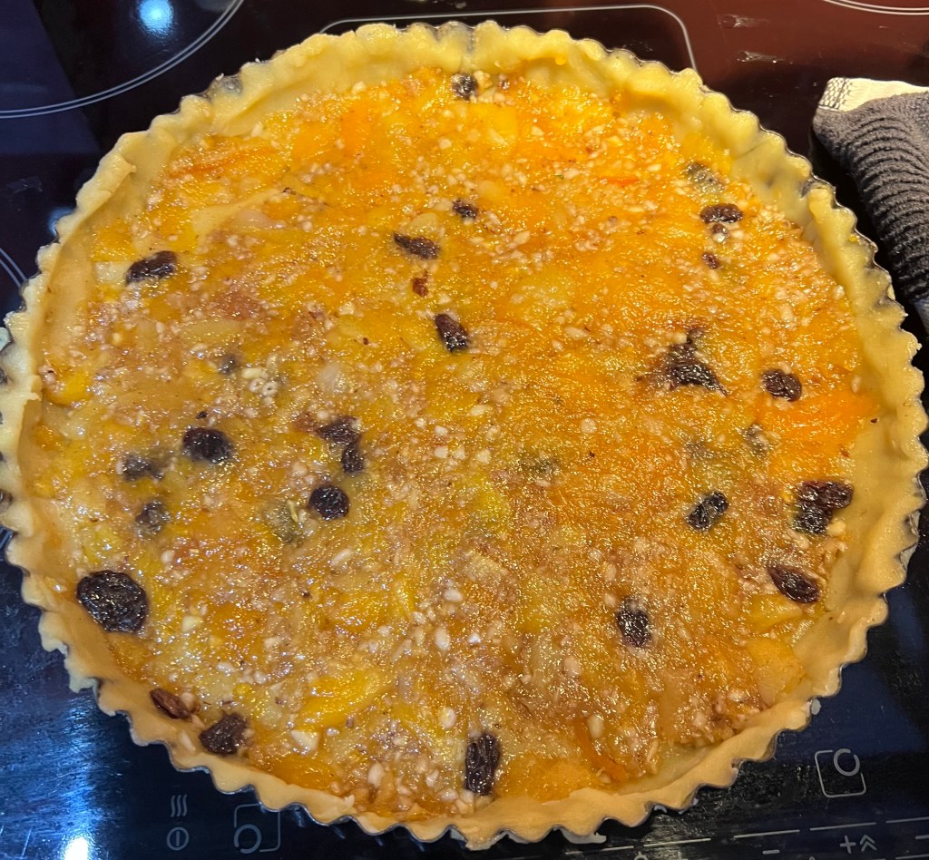 Recipe online from Be-Inspired (Roberta Muir): https://food-wine-travel.com/spungata-apricot-tart/
