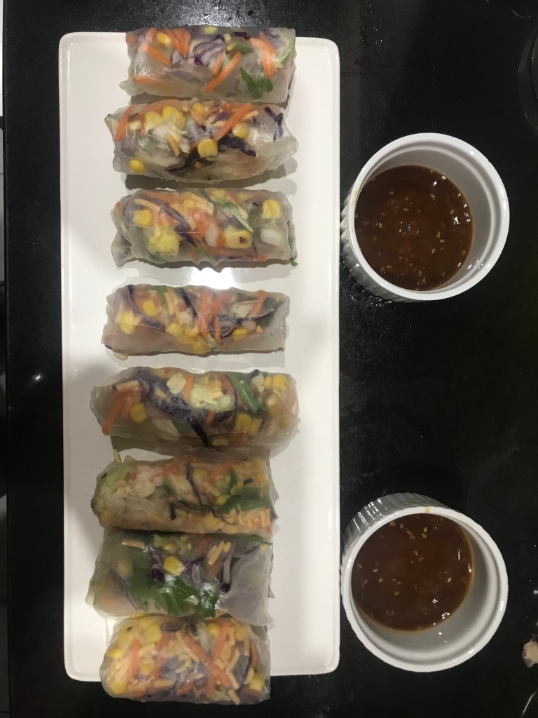 Rice paper rolls (vegetarian super quick/ “lazy”). They disappeared just as quick.