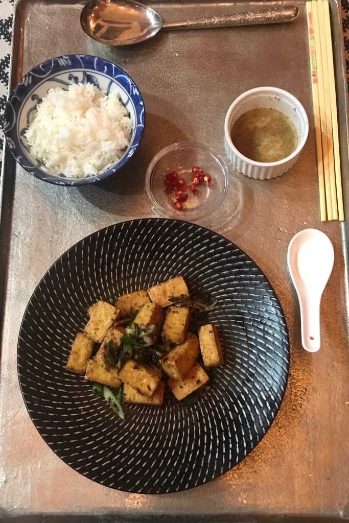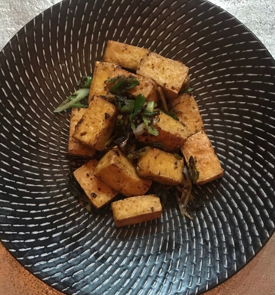 This is one of my favourite dishes. This recipie calls for firm tofu (which I used). I prefer the silken tofu version which although harder to make sure it does not break up, the crisp exterior and silk interior adds another dimension.