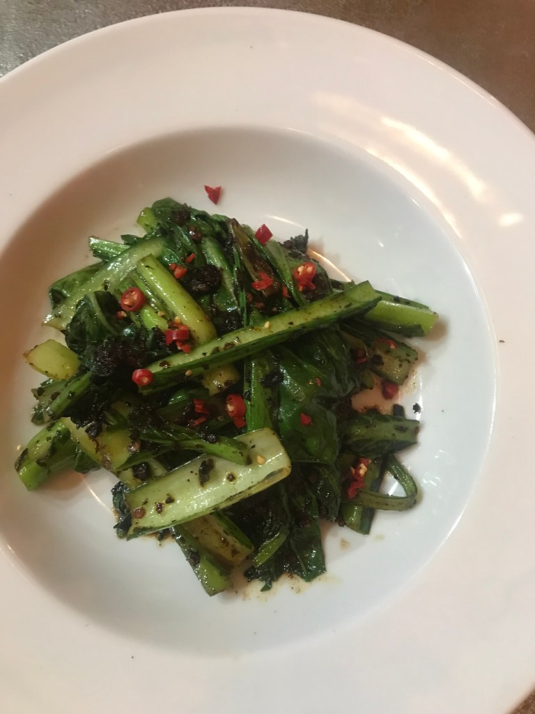 Apart from the much higher quantity of “funky fish stuff” there was a big difference in cooking. The balacan went into a smoking hot wok. Induction 9. I also think the addition of dried shrimp and fish sauce reduced the pungency.