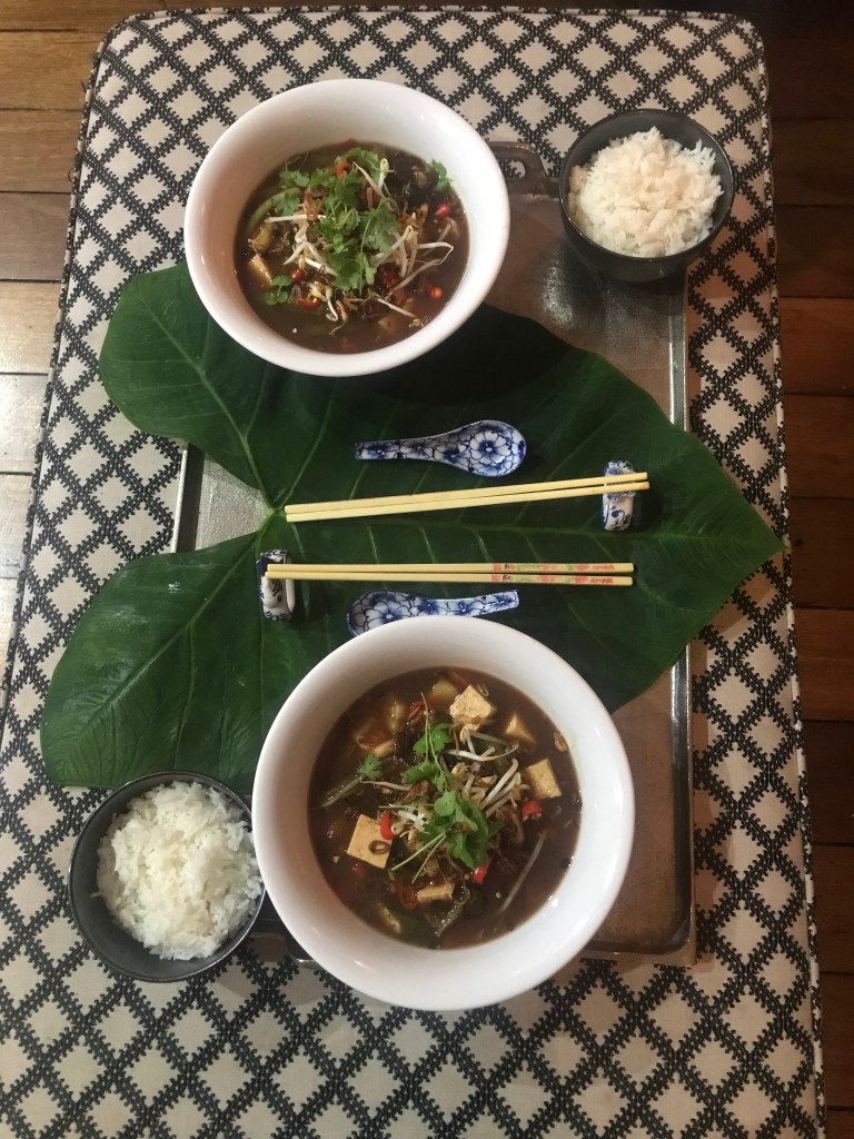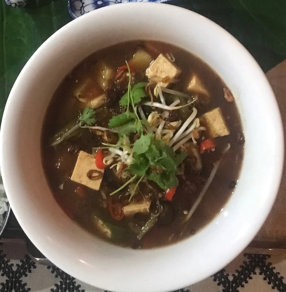 Required Elephant Ear Stem (taro stalks). First for me. I used the leaf as decoration (as well as the stem in the soup). Tasted a bit like a green onion, without onion flavour. I was tempted to try it raw, but a few websites say it must be cooked. Without knowing more, I was not going to risk not cooking it.