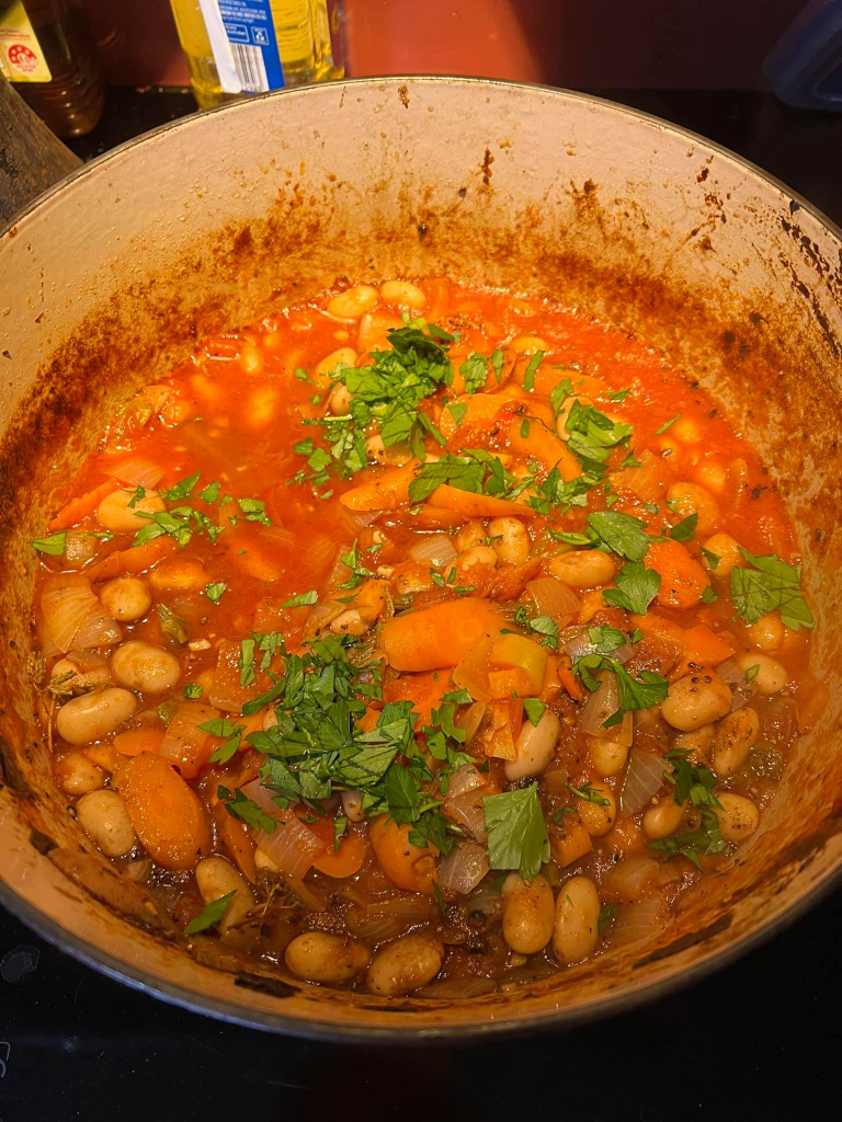 This time I didn’t use canned, and I skinned and deseeded, and doubled the tomato paste to add flavour.
