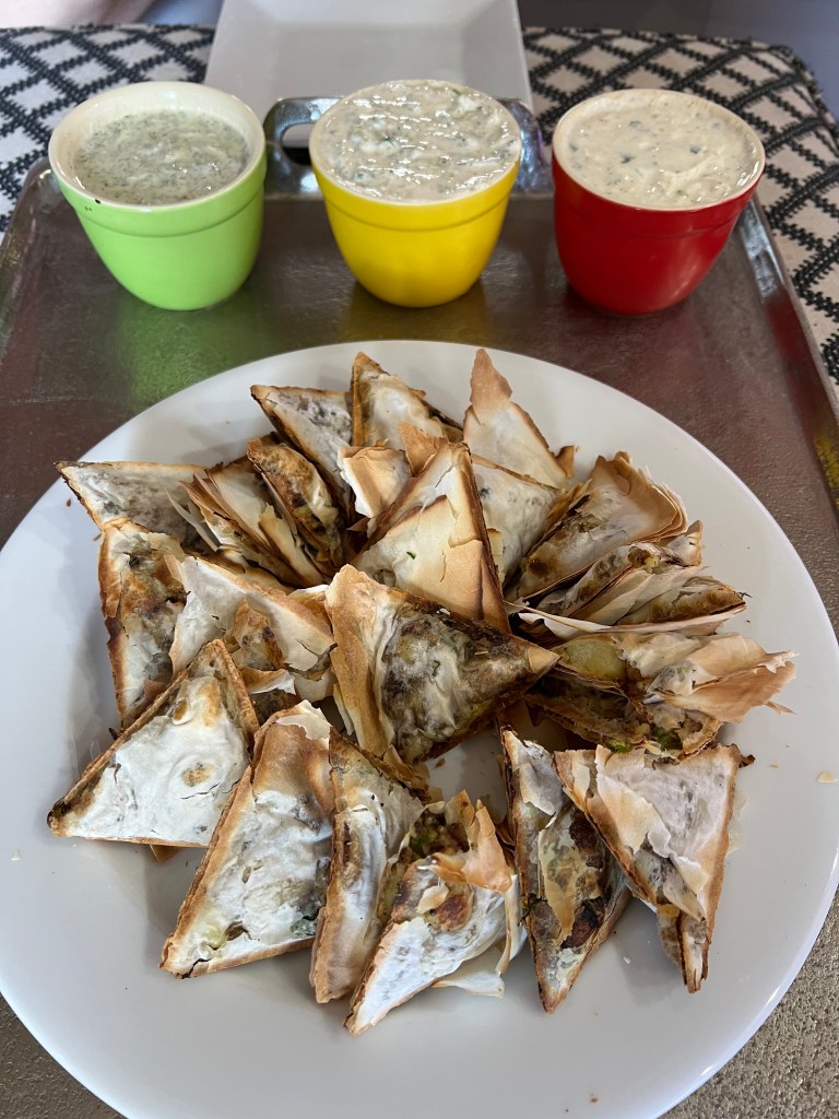 The instructions only called for one sheet of store bought filo pastry per side. I thought that was too thin. I added 3 a side. Next time I will brush each sheet with EVOO and layer them (channeling Janni). Also If I make it fresh, it is stretchable, which it needs to do to fill the voids.
