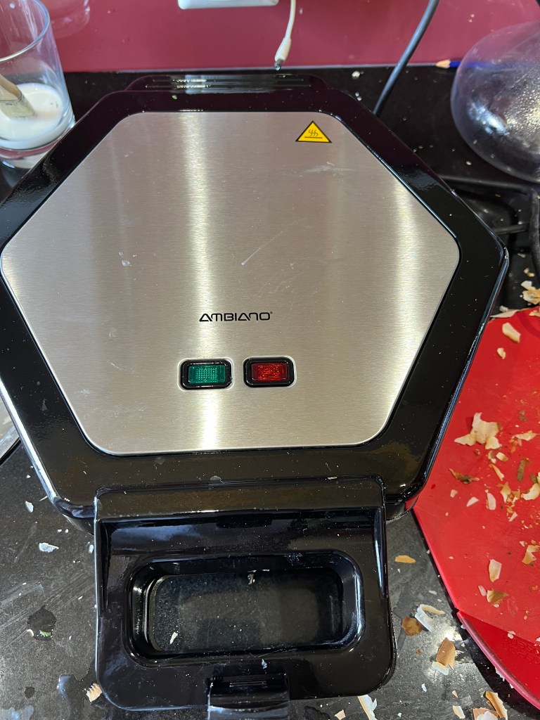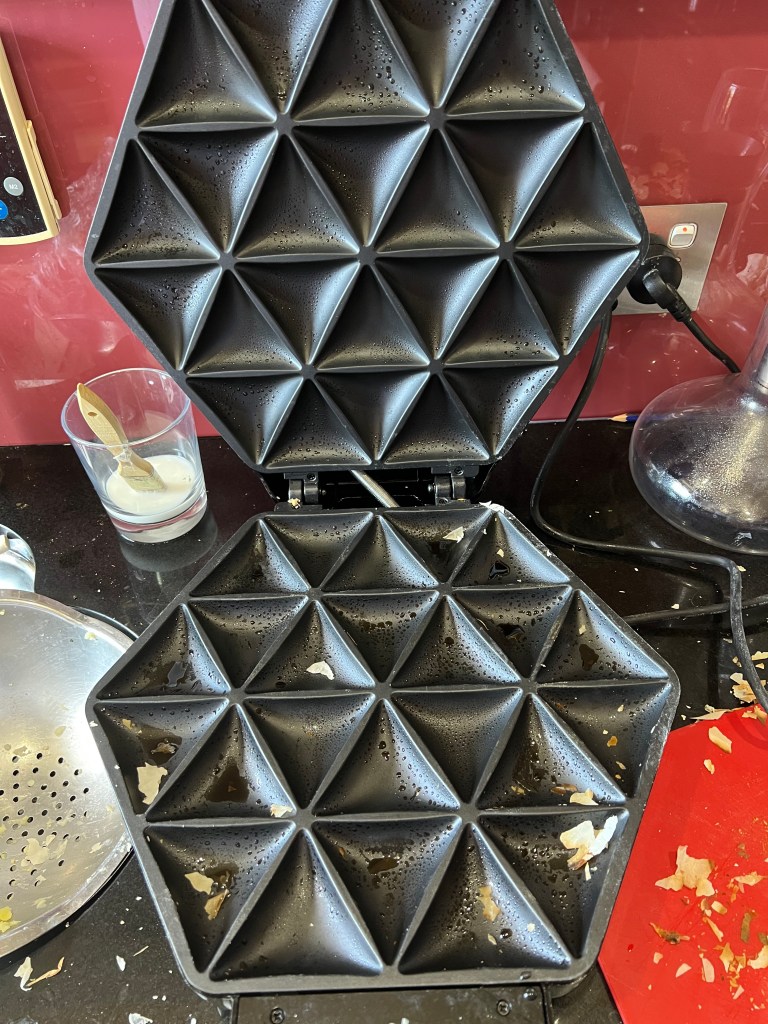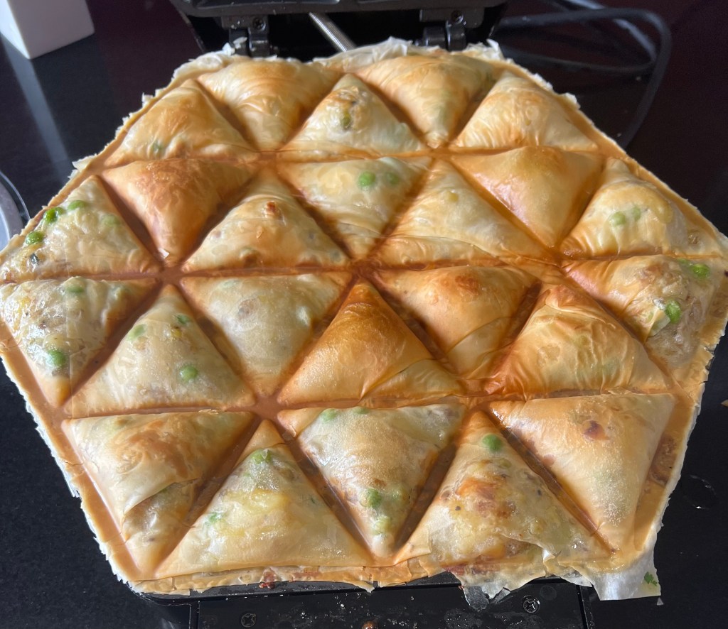 Opposite to what the instructions said, I laid out the filo and filling whilst the machine was cold. Added a Janni quantity of oil between the layers of filo. Otherwise same ingredients as yesterday. Results far better