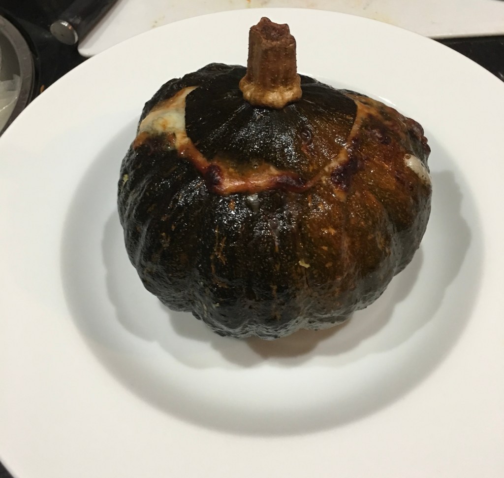 Recipe online: https://www.fearlessdining.com/vegetarian-stuffed-kabocha-squash-recipe/#recipe