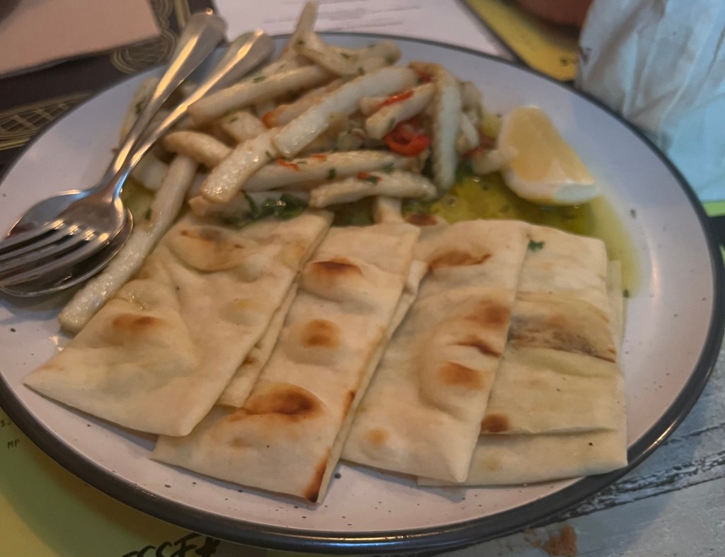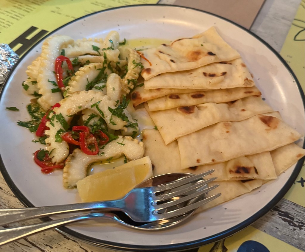 PAN ROASTED CALAMARI (Red chili, garlic, parsley, lemon, grilled flatbread)