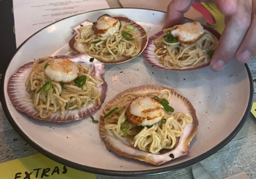 PAN SEARED SCALLOP (garlic, seaweed butter, egg noodles, chives)