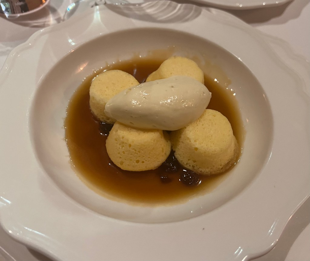 GOLDEN SYRUP DUMPLINGS, RUM, RAISIN, MALT CREAM