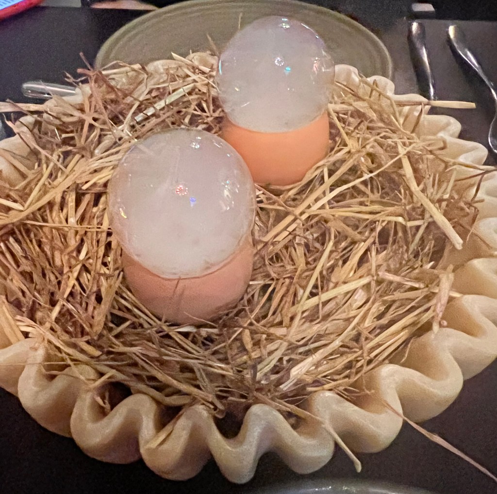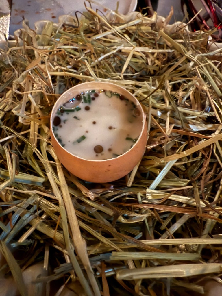STEAMED EGG CUSTARD WITH THAI TOM KHA BROTH, CHIVE AND TOBIKO
