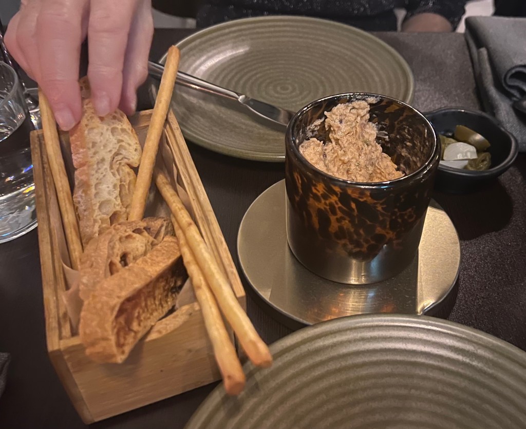 HOUSE SMOKED OCEAN TROUT PATE, DUCK FAT WITH CRISPY BREADS