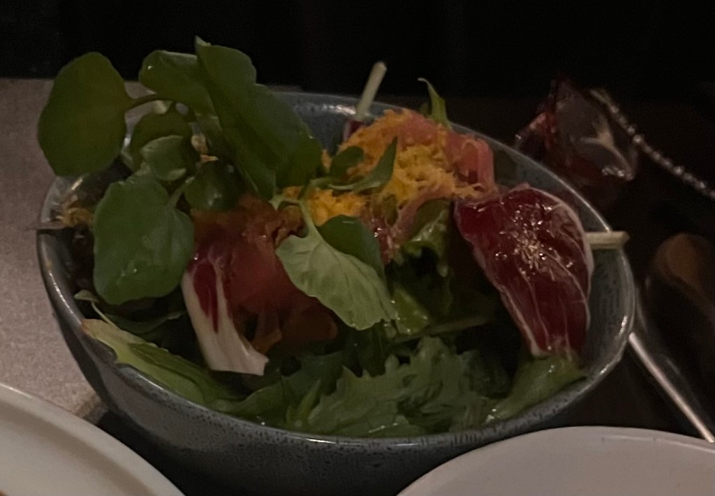 MIXED SALAD WITH SESAME DRESSING AND SALTED YOLK