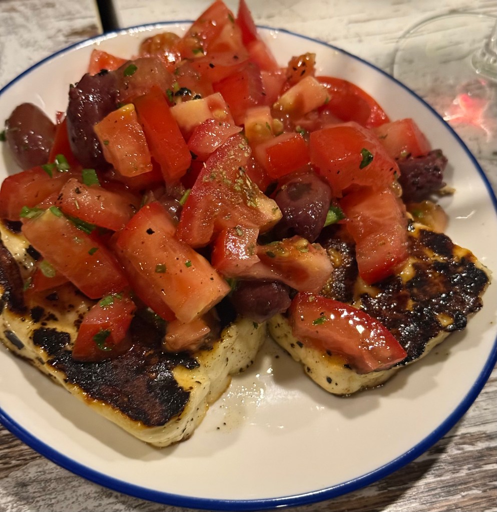 HALLOUMI (Tomato salad, olives, oregano, urfra pepper)