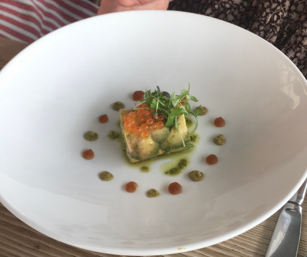 AVOCADO & CRAB ‘CANNELLONI’ thinly sliced avocado rolled and willed with spanner crab, salmon pearls