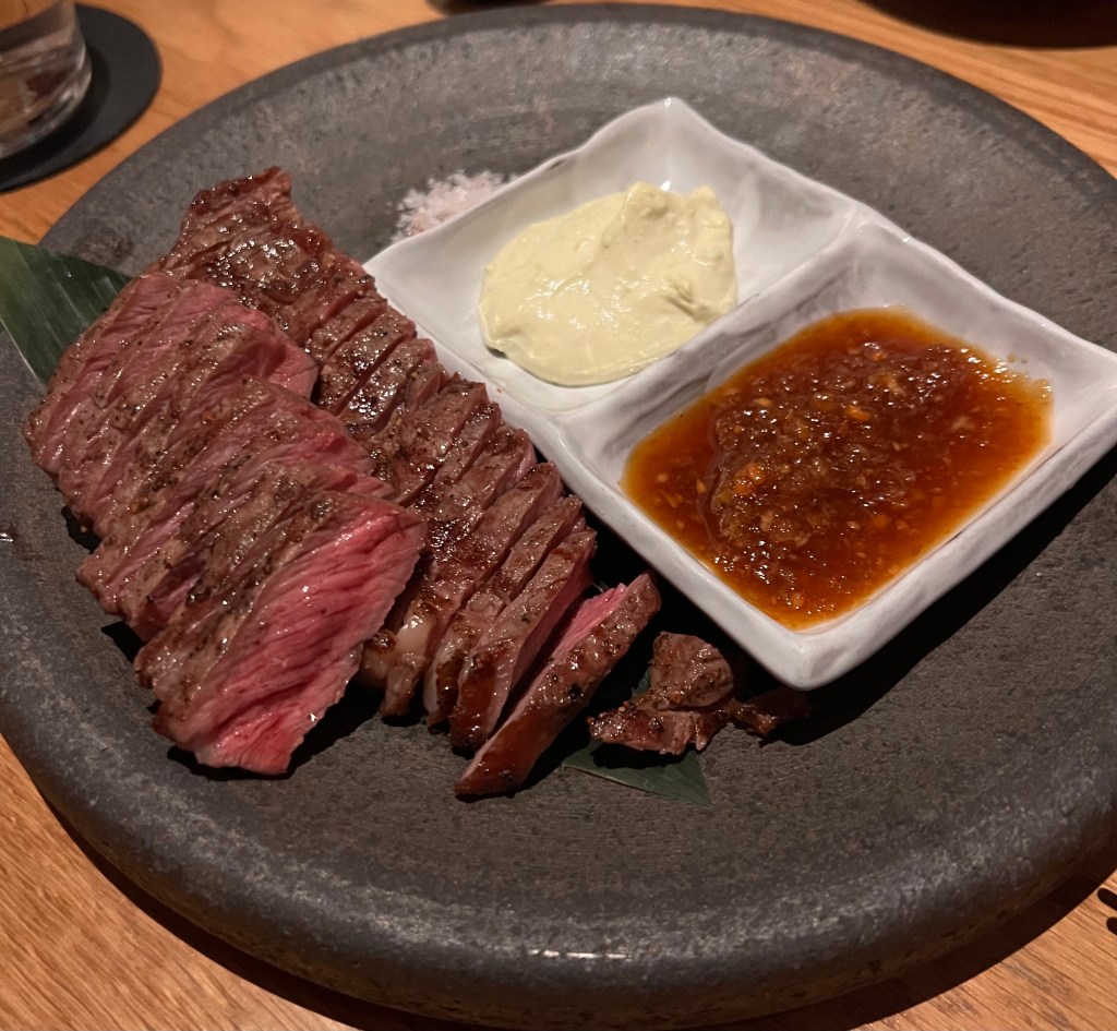 150-DAY GRAIN FED SCOTCH FILLET W WAFU, WASABI SOUR CREAM, RHUBARB SALT