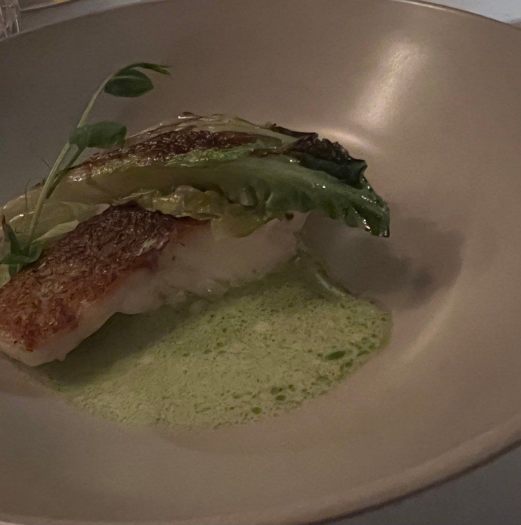 ORA KING SALMON, calamari, shiitakes, roast garlic veloute