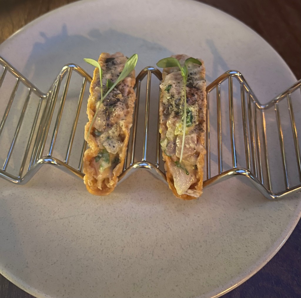 CEVICHE TACO, AJI AMARILLO, CHARCOAL SALT