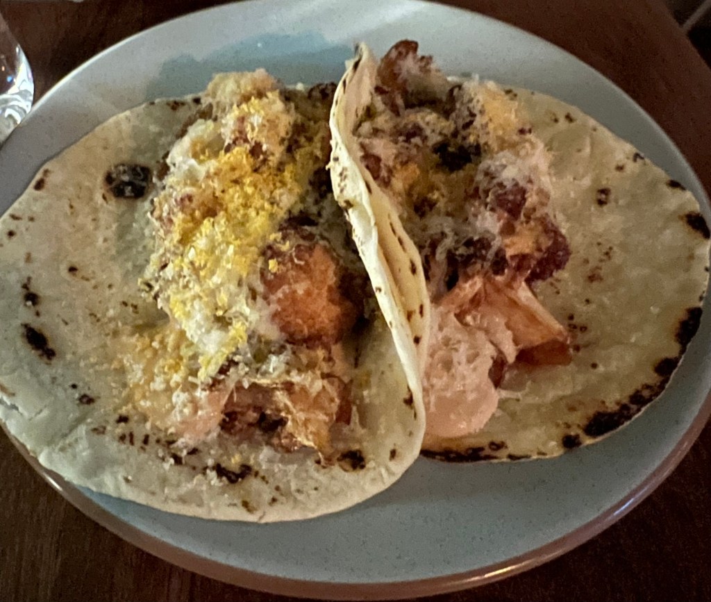 CAULIFLOWER TACO, ROASTED GARLIC PUREE, MANCHEGO, CURED EGG YOLK