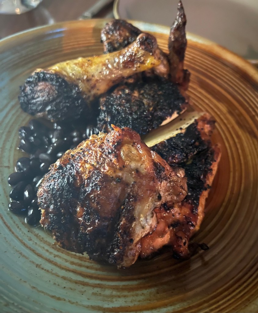 CORNFED CHICKEN, SPICY ANCHO RUB, BLACK BEAN ROAST JUS