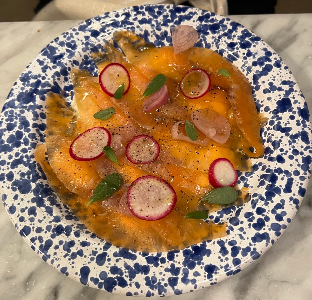 TROTA (Trout carpaccio with salted lemon flavoured mascarpone cheese and radish)