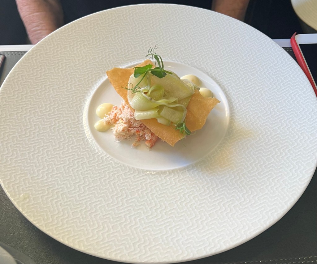 INSALATA DI GRANCHIO, PANE CARASAU, ZUCCHINE TROMBETTA IN SCARPECE (Crab Salad, flat crispy bread and fried zucchini in scarce)