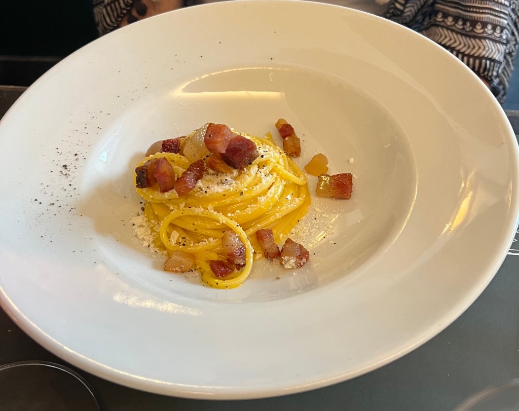 SPAGHETTI ALL CARBONARA (Egg sauce, bacon “guanciale” and pecorino cheese)