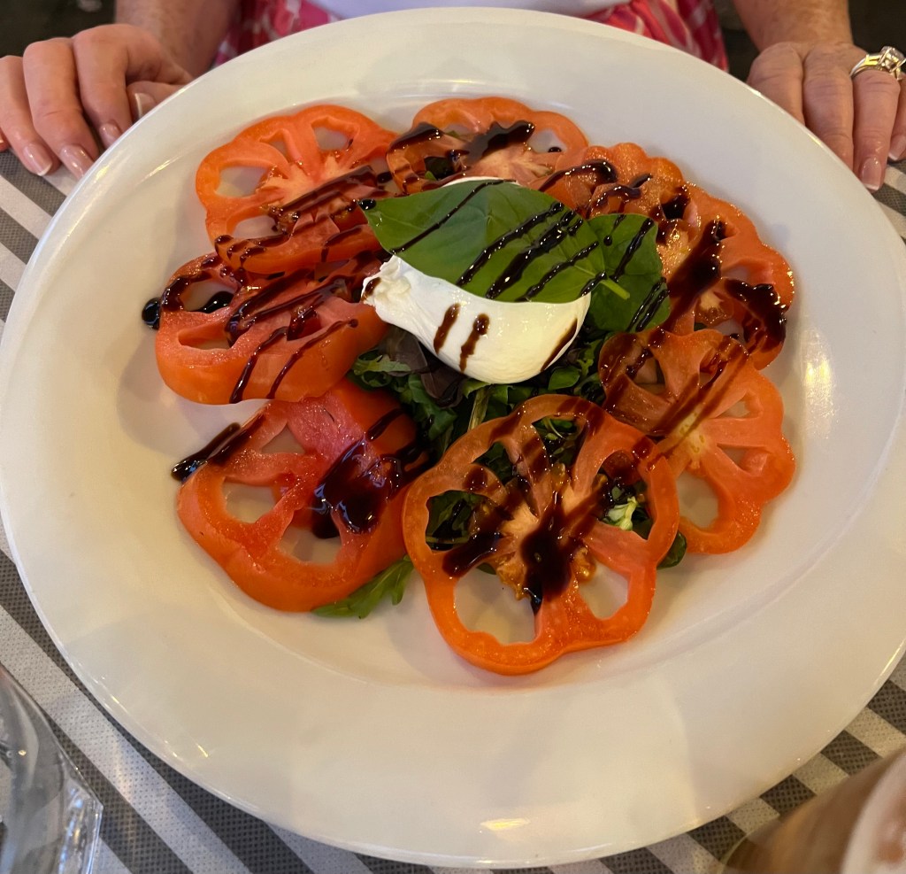 CAPRESE DI BURRATA, POMODORO FRESCO, BURRATA E BASILICO (Caprese salad with burrata cheese and tomatoes)