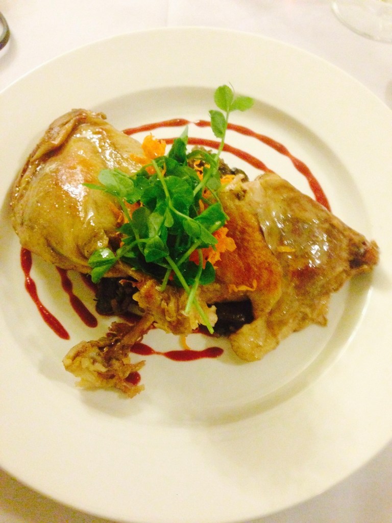 DUCK (VG. Great presentation. Suspect it has been sous vide as it did not have the duck fat confit flavour. What it needed was to crisp up the skin before serving. 8.5/10)