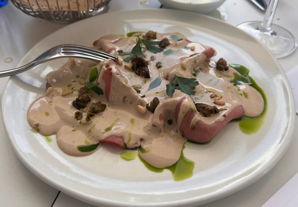 VITELLO TONNATO slow cooked veal with tuna mayonnaise, fried capers & parsley oil