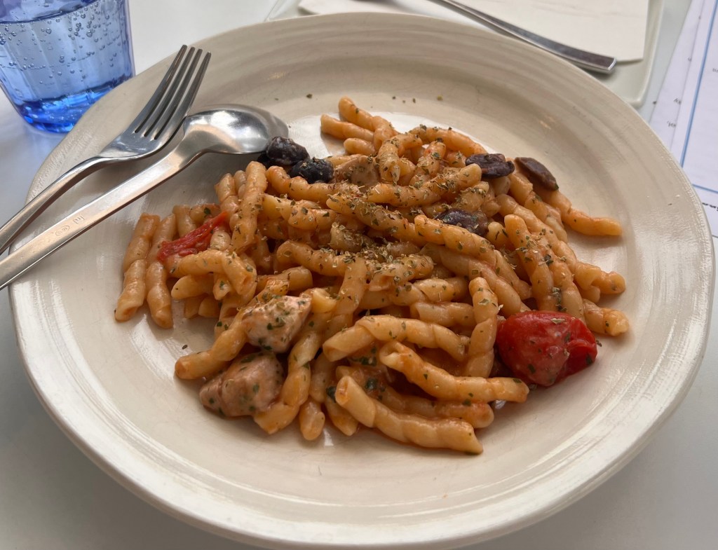 BUSIATE ALLA PUTTANESCA DI TONNO traditional Neapolitan busiate pasta with yellowfin tuna, cherry tomatoes, capers & olives