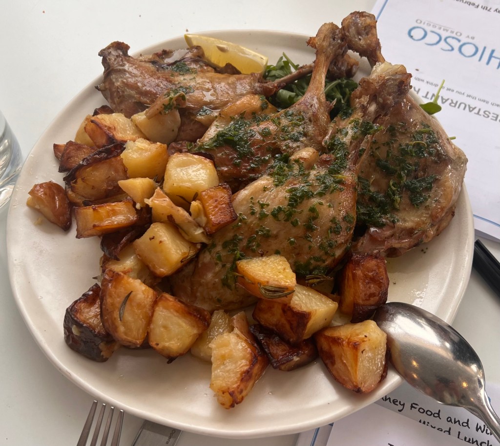 ANATRA ARROSTO roasted maryland duck leg with gremolada dressing and jus served with roasted potatoes