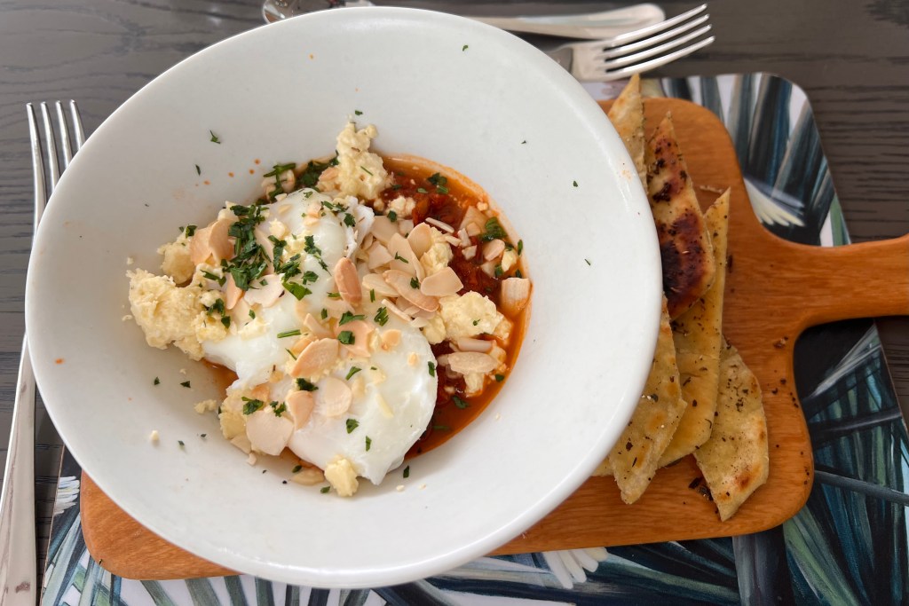 BAKED EGG SHAKSHUKA, with spiced tomato sauce and Za’atar Naan