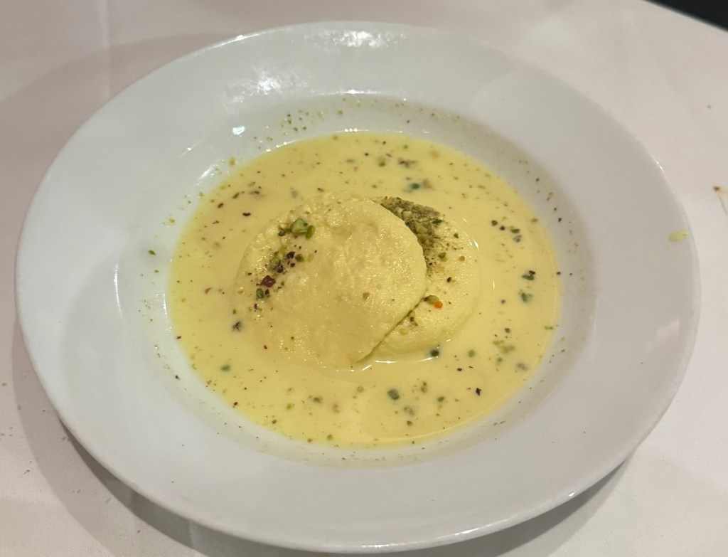 RASMALAI two handmade soft cheese dumplings soaked in sweet, creamy, saffron-infused milk
