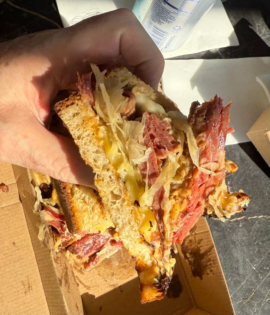REUBEN SANDWICH House-corned Angus beef brisket, Russian sauce, sauerkraut, Swiss cheese, mustard, lightly charred sourdough bread