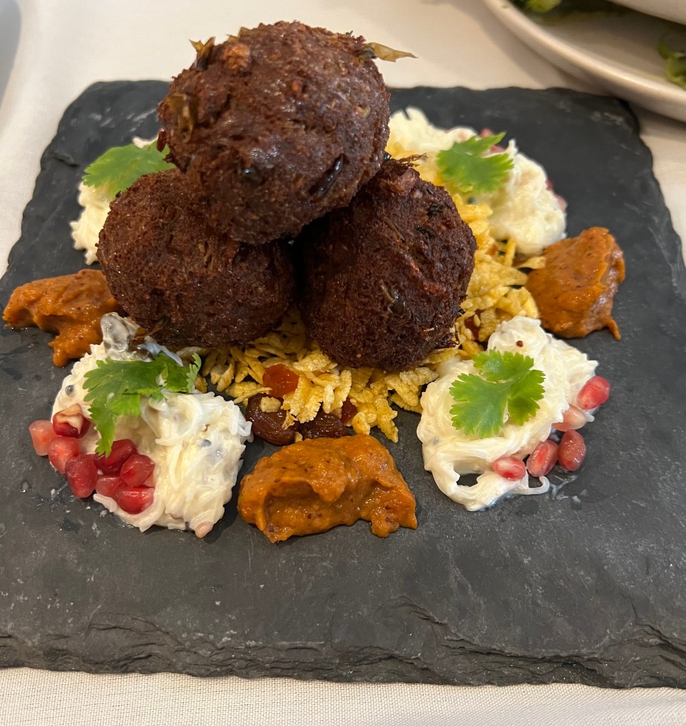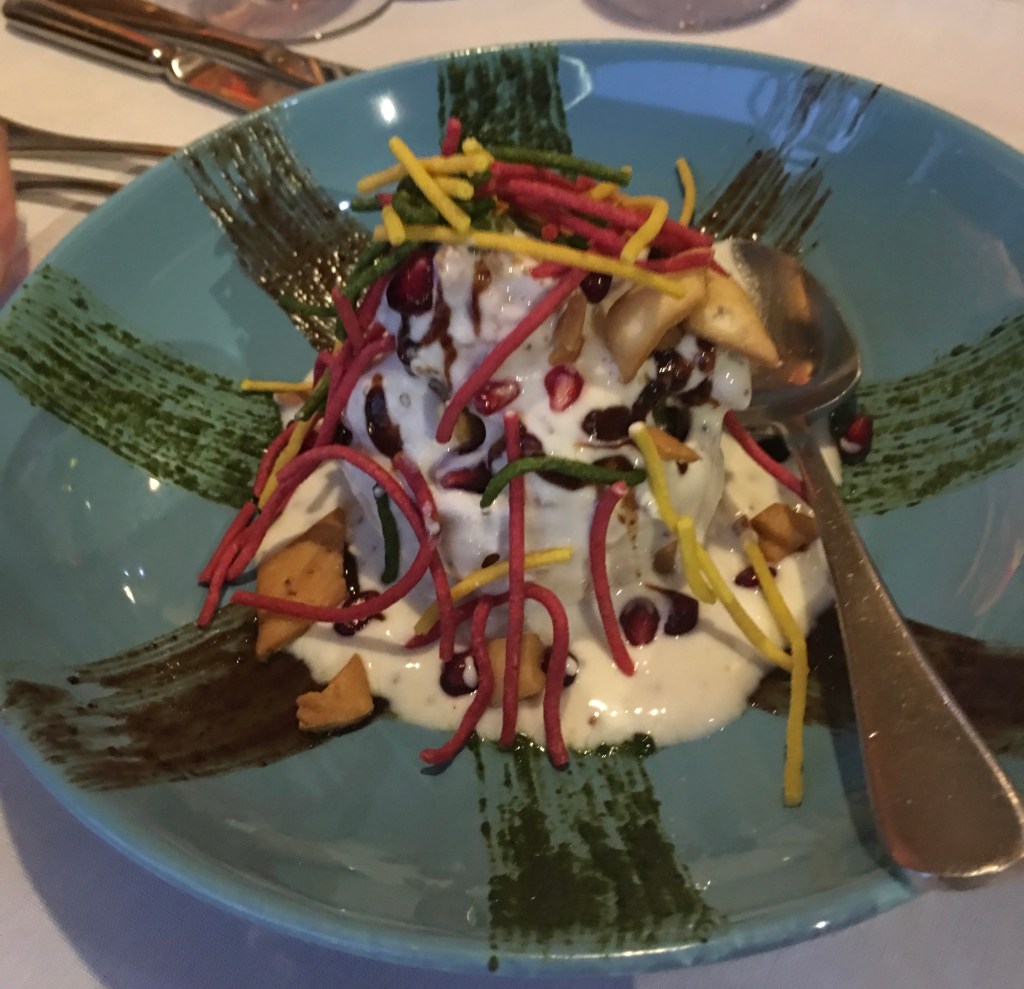 BEETROOT HALWA shredded beetroot reduced in milk & sugar, finished with ghe… gulkanth’ (rose petal jam). Served with rose petal ice cream and garnished with pistachio, supari soil and beetroot chakarapara