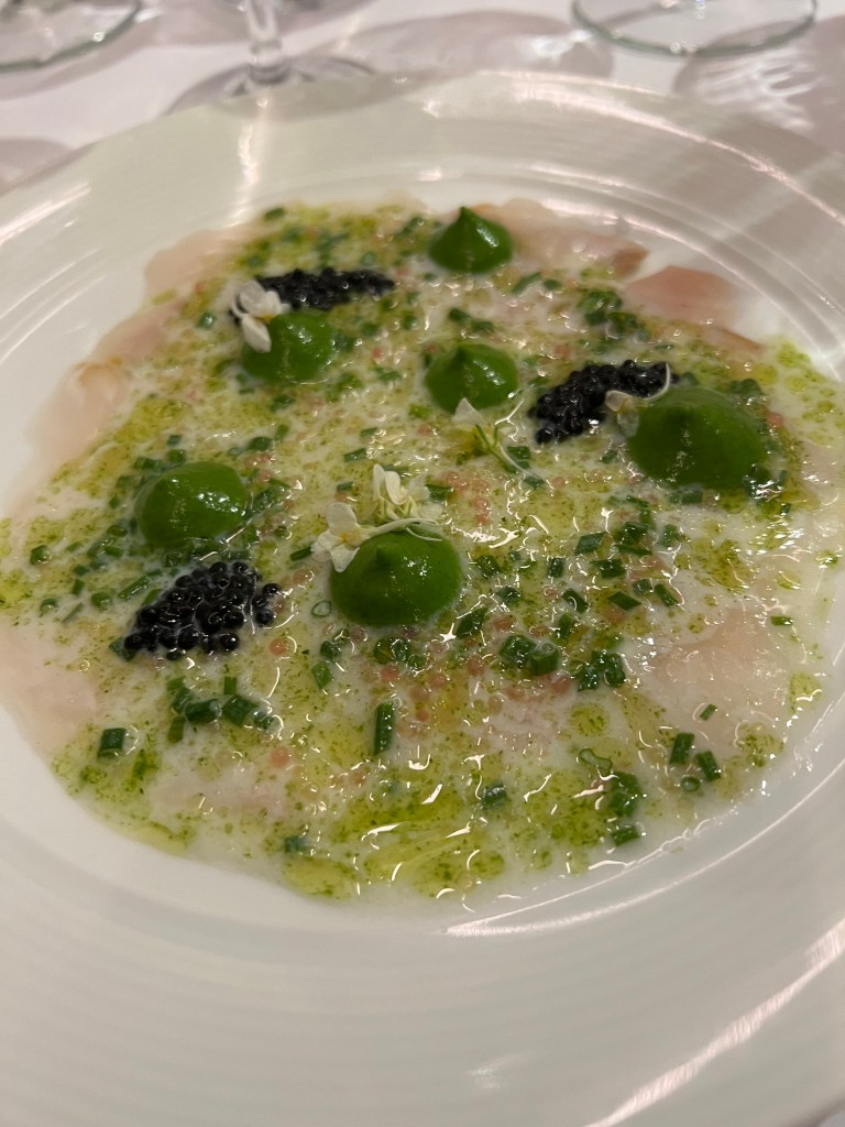 SNAPPER CRUDO, FINGER LIME, BUTTERMILK DRESSING, AVURGA CAVIAR