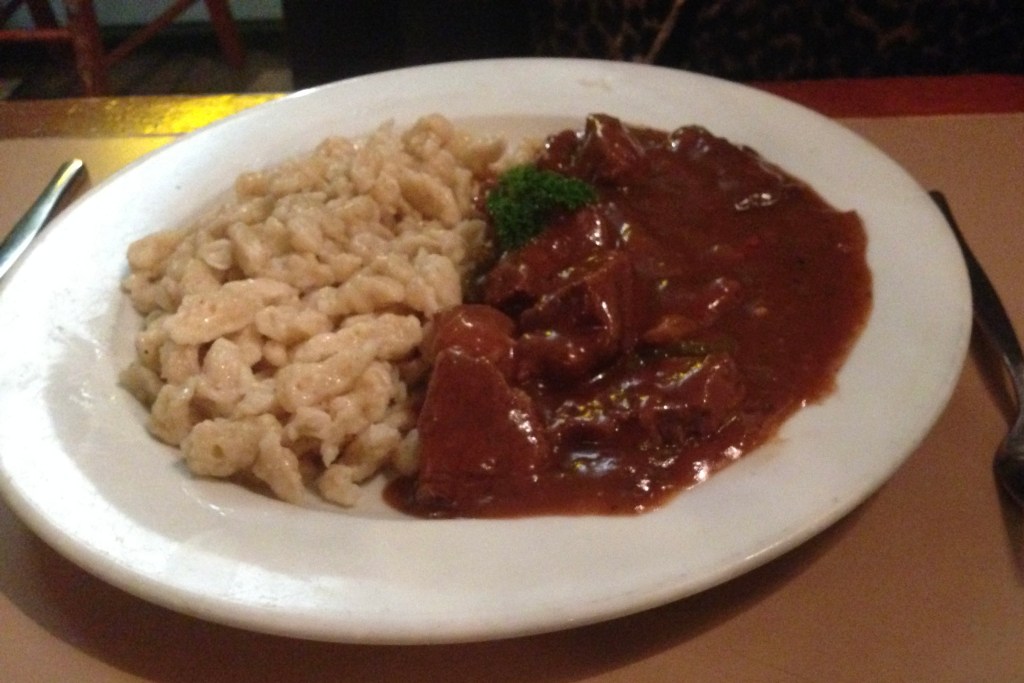 GOULASH WITH SPATZLE (small dumplings)