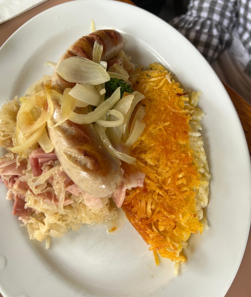 SWISS WEISSWURST w sauerkraut & rosti