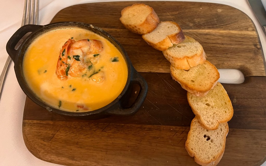 GARLIC PRAWNS w prawn and chilli bisque & baguette